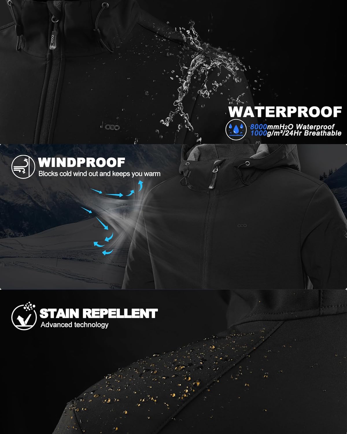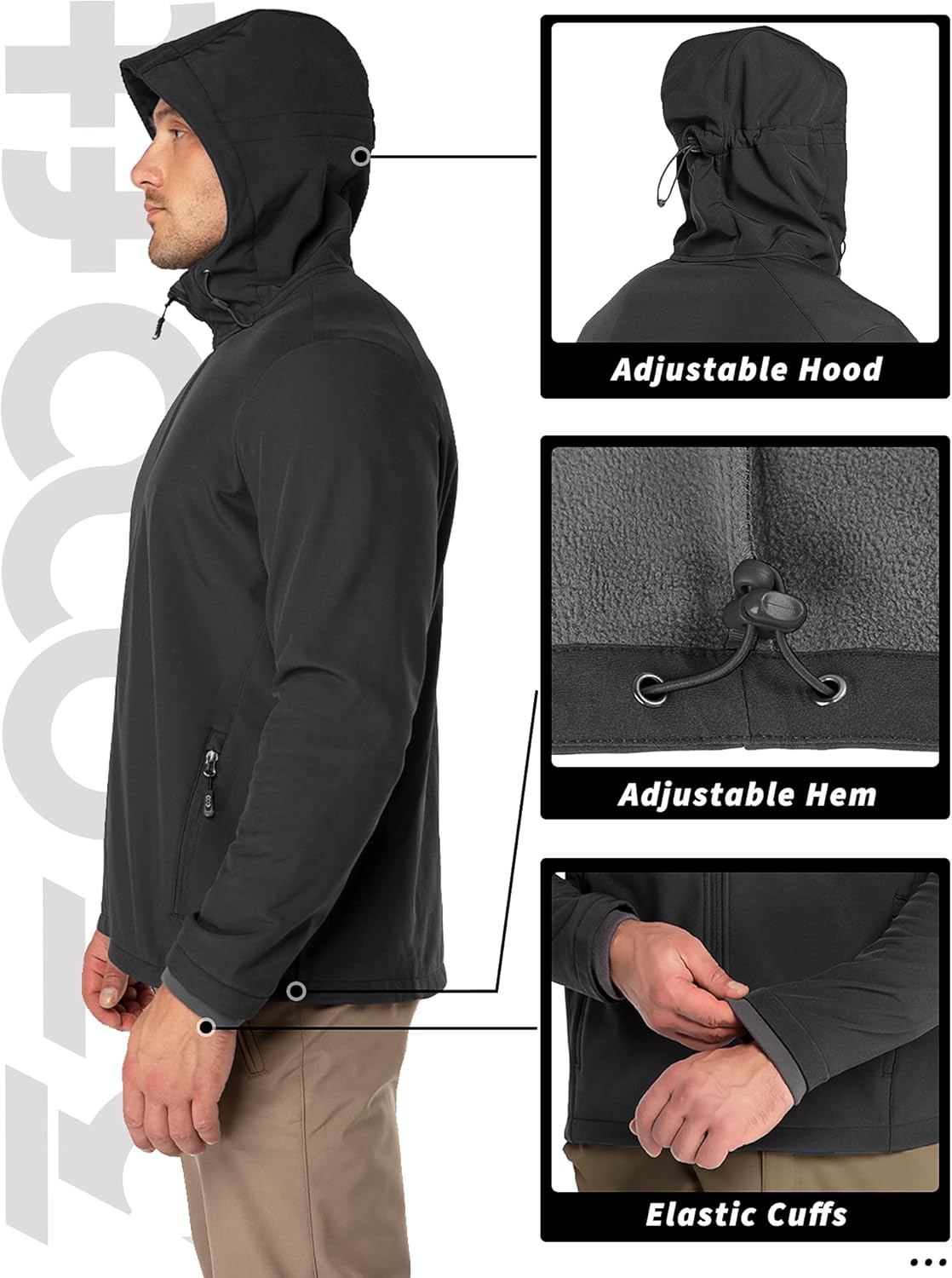 Introducing the Men's Hooded Softshell Jacket, the ultimate combination of style, comfort, and functionality. This jacket is made with a waterproof and windproof exterior, ensuring that you stay dry and protected in any weather condition. The soft fleece lining provides additional insulation and warmth, making it the perfect outerwear for the colder months.